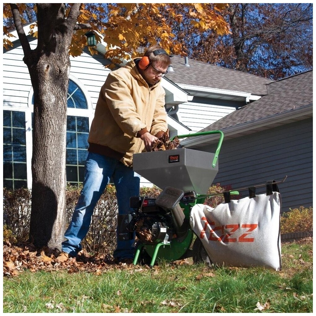 Engine type: gasoline, power: 7 hp, purpose: chopping branches and leaves, chopping system: cutting knives, branches diameter: 65–100 mm, design features: feed funnel, wheels, container, garbage collection