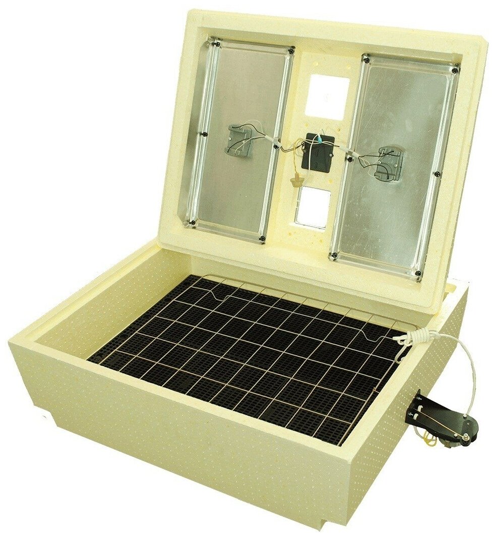 Type: incubator, purpose: household, number in the set: 1 pieces, flipping: automatic, type of eggs: pigeon, goose, turkey, chicken, quail, duck, features: automatic switching to emergency power