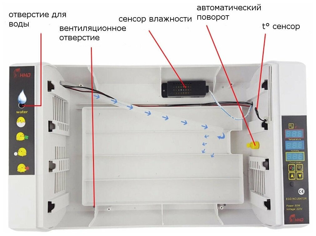 Type: incubator, purpose: domestic, quantity in a set: 1 pieces, flipping: automatic, type of eggs: goose, chicken, duck, features: automatic maintenance of the set temperature
