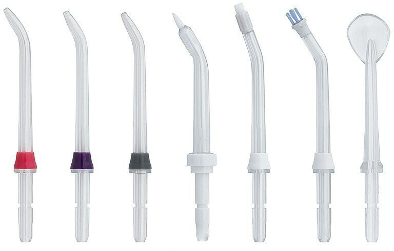 For jet cleaning, for cleaning implants and crowns, for cleaning the tongue, brush head, orthodontic for braces, periodontal for gums