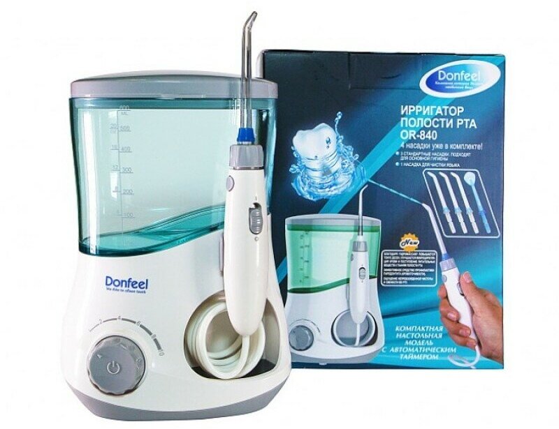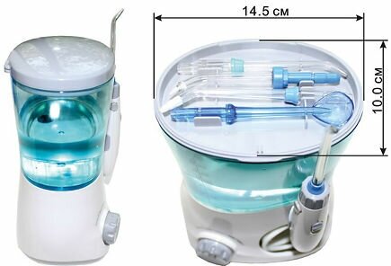 Power supply: from the mains, type: irrigator, principle of operation: microbubble technology, nozzles: for jet cleaning, for tongue cleaning, orthodontic for braces, periodontal for gums, reservoir capacity: 600 ml, poppy
