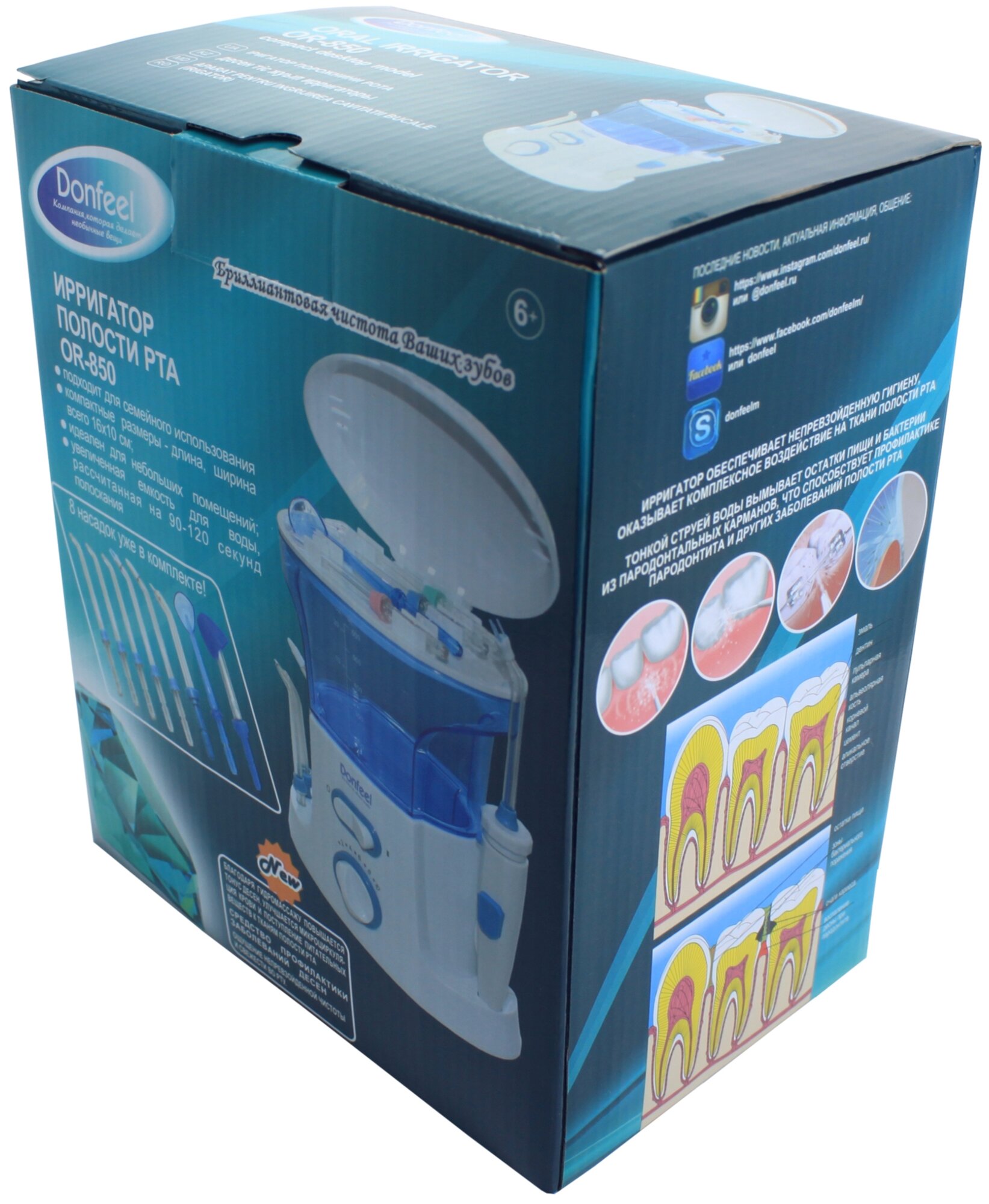 Power supply: from the mains, type: irrigator, principle of operation: impulse, nozzles: for jet cleaning, for cleaning implants and crowns, for cleaning the tongue, nasal, orthodontic for braces, periodontal for gums, capacious