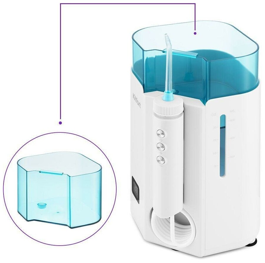 Description: Power supply: from the mains, type: irrigator, principle of operation: impulse, nozzles: for jet cleaning, for cleaning the tongue, brush head, orthodontic for braces, reservoir capacity: 600 ml, maximum jet pressure: 850 kPa, min.