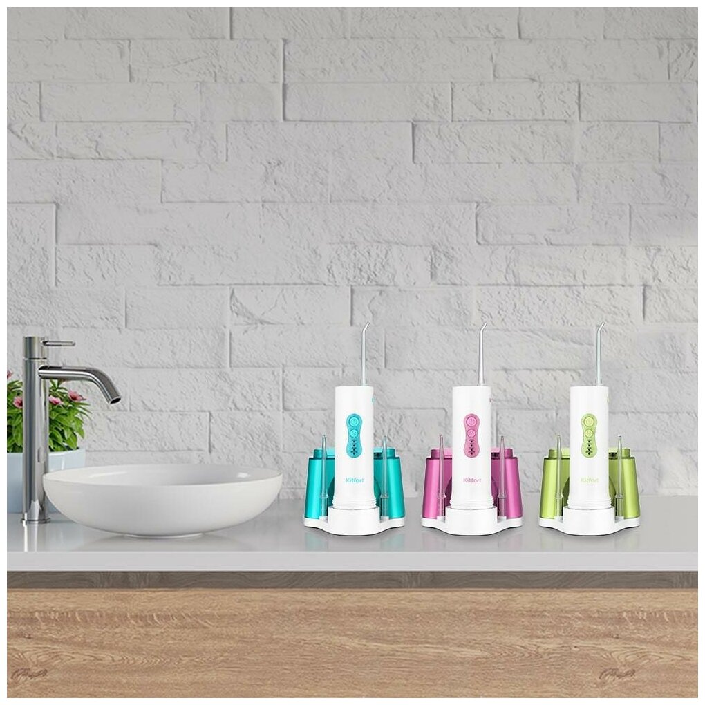 Powered: by battery, type: dental center, principle of operation: microbubble technology, nozzles: for jet cleaning, brush head, periodontal for gums, number of irrigator modes/adjustments: 3, modes: page