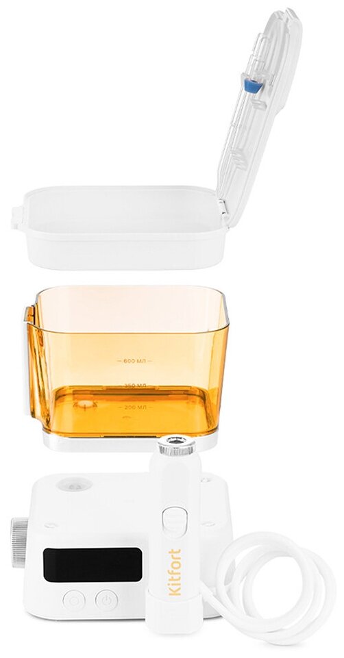 Irrigator: Reservoir cover, it is also a container for storing nozzles - 1 pc. Jet nozzle - 2 pcs. Water tank - 1 pc. USB cable - 1 pc. Bag - 1 pc. Operation manual - 1 pc