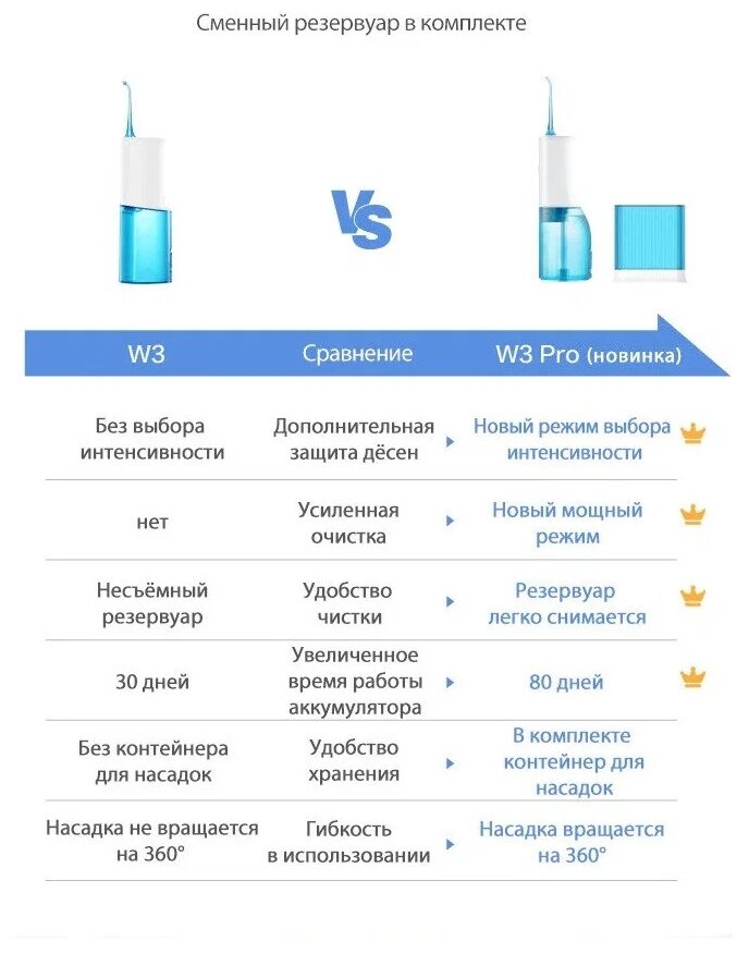 Xiaomi Soocas W3 Pro 4 tips White-Blue