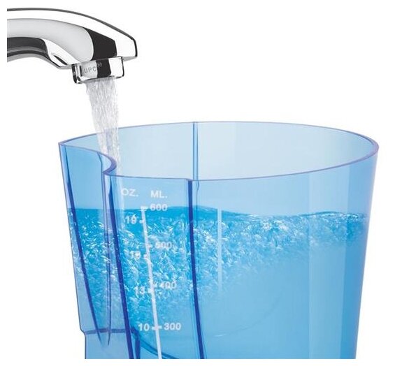 Power supply: rechargeable battery, type: dental center, principle of operation: impulse, nozzles: brush nozzle, tank capacity: 600 ml, additional functions: suitable for children, features: switch on the handle, rotation of the nozzle on