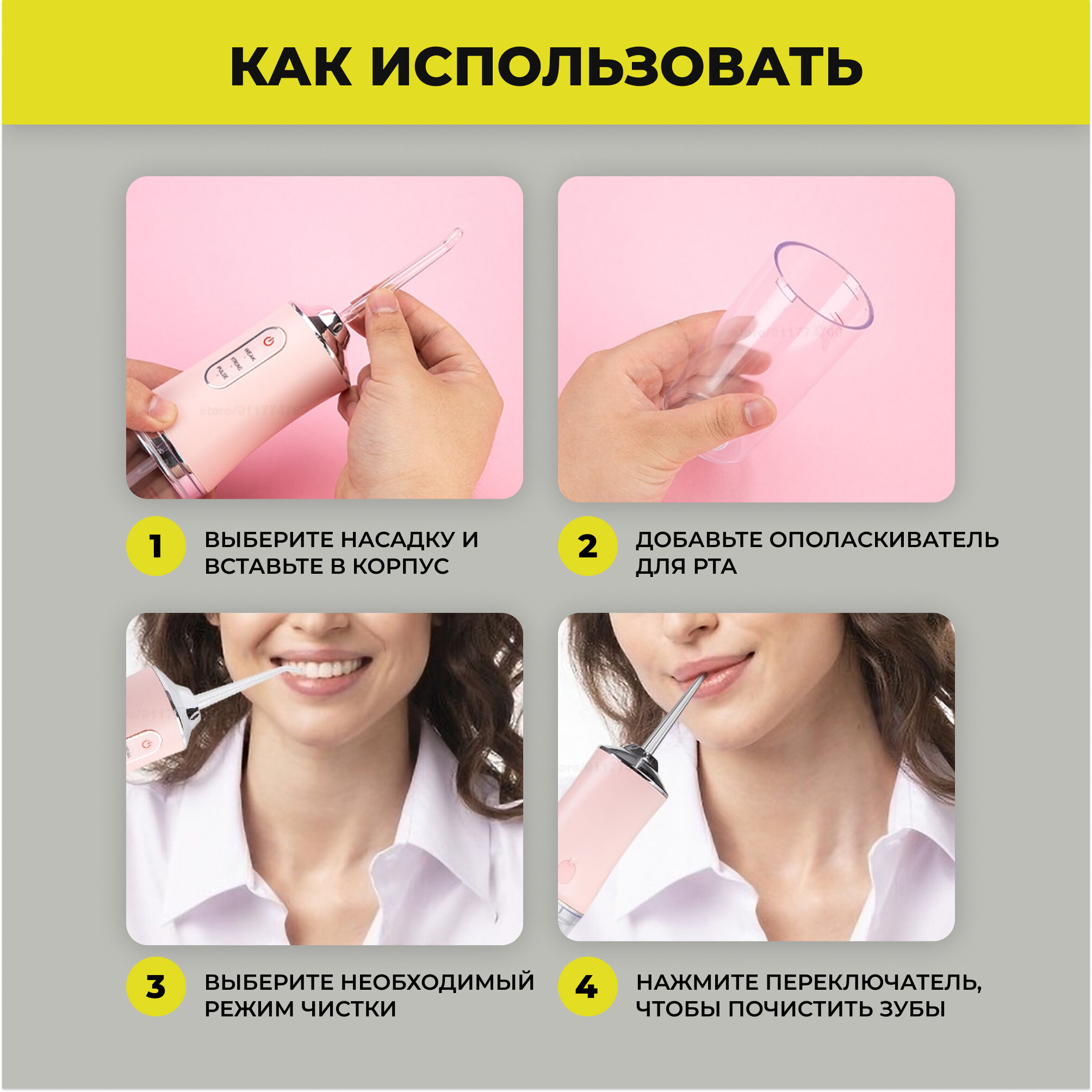 4 nozzles per set, 1pcs portable wireless irrigator for gentle cleaning of teeth and gums