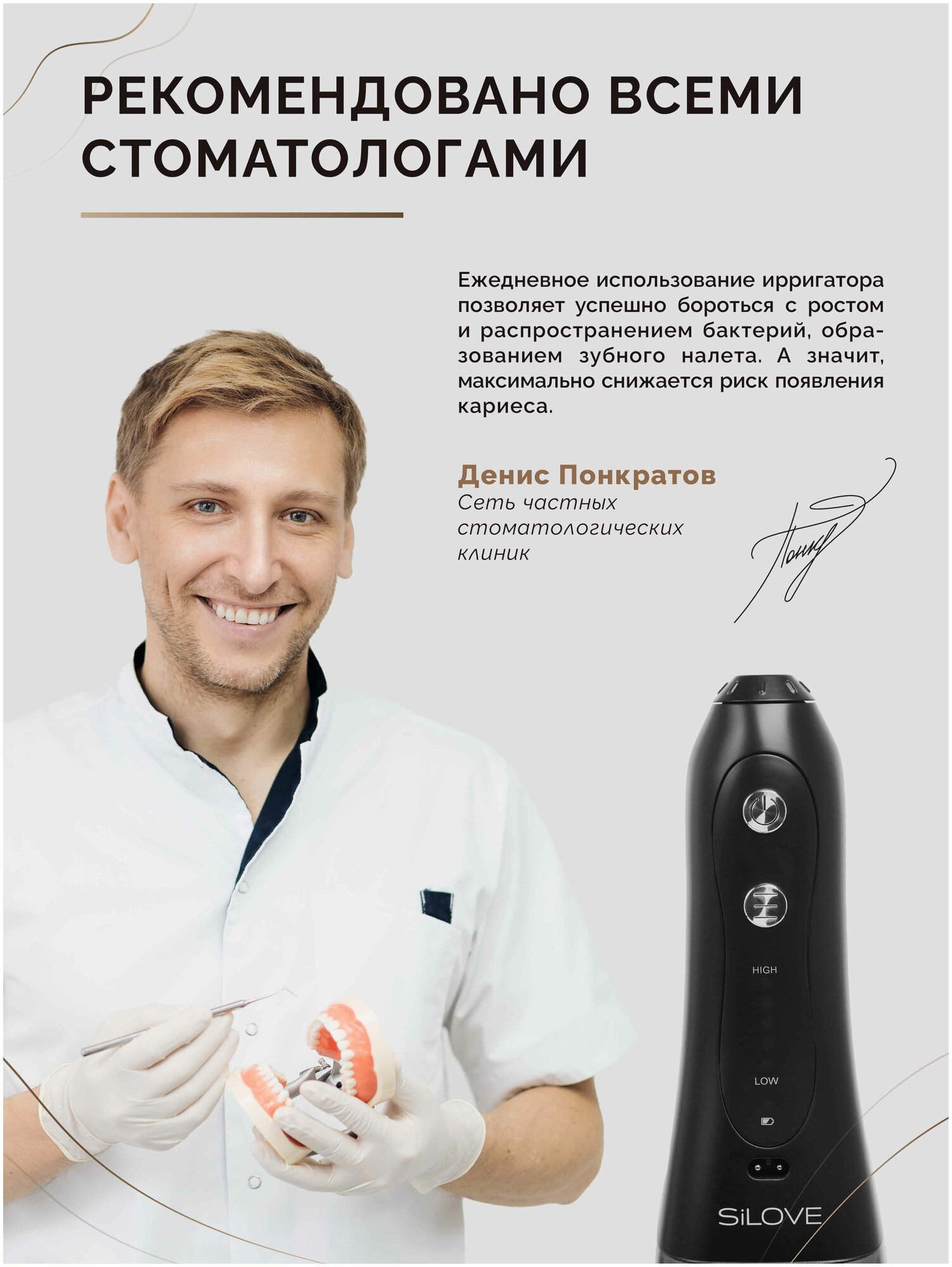 Power supply: battery powered, type: irrigator, principle of operation: impulse, nozzles: for jet cleaning, for cleaning implants and crowns, for cleaning the tongue, orthodontic for braces, reservoir capacity: 300 ml, maximum