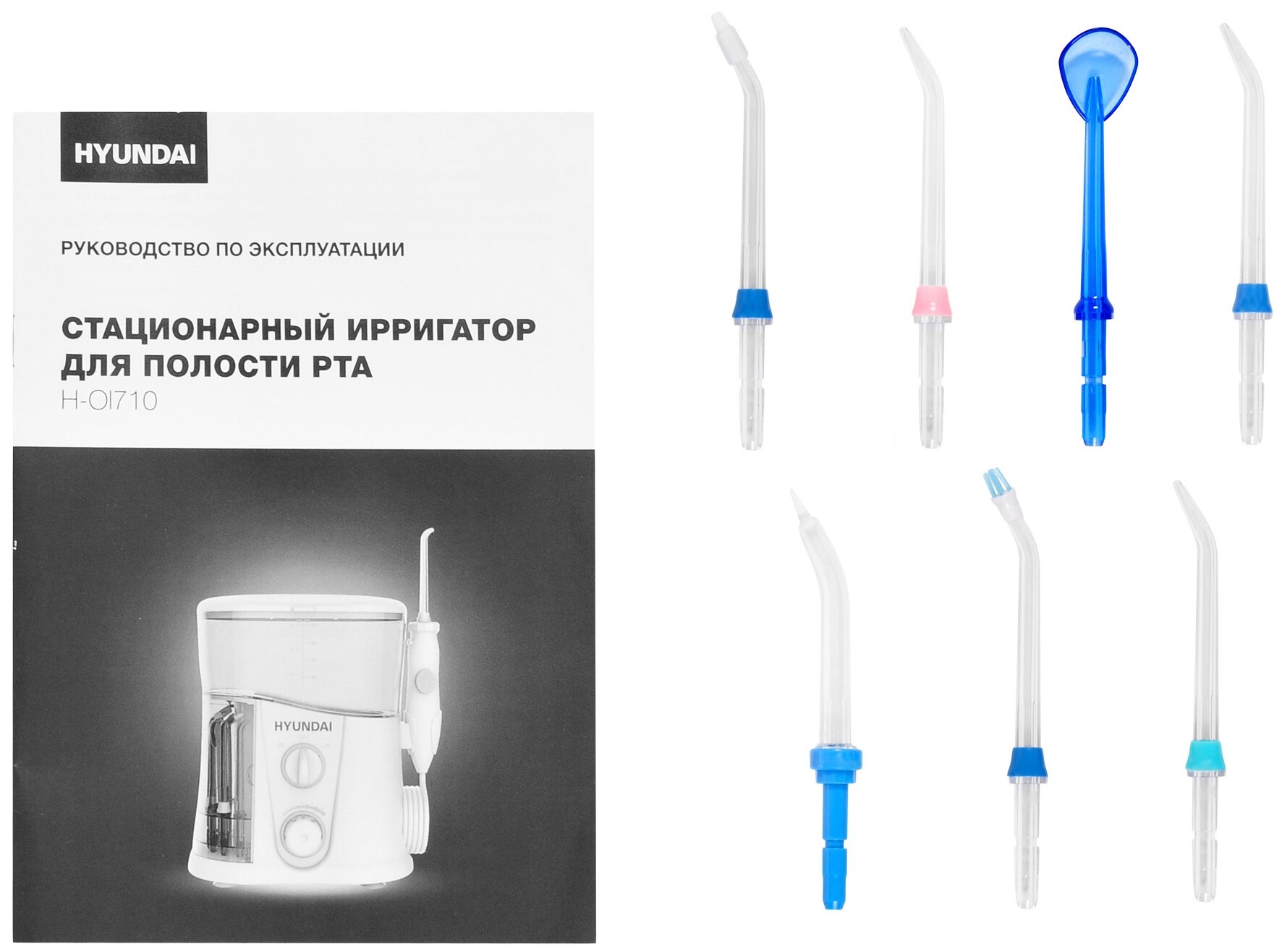 Power supply: from the mains, type: irrigator, principle of operation: impulse, nozzles: for cleaning implants and crowns, for cleaning the tongue, orthodontic for braces, periodontal for gums, tank capacity: 1000 ml, maximum
