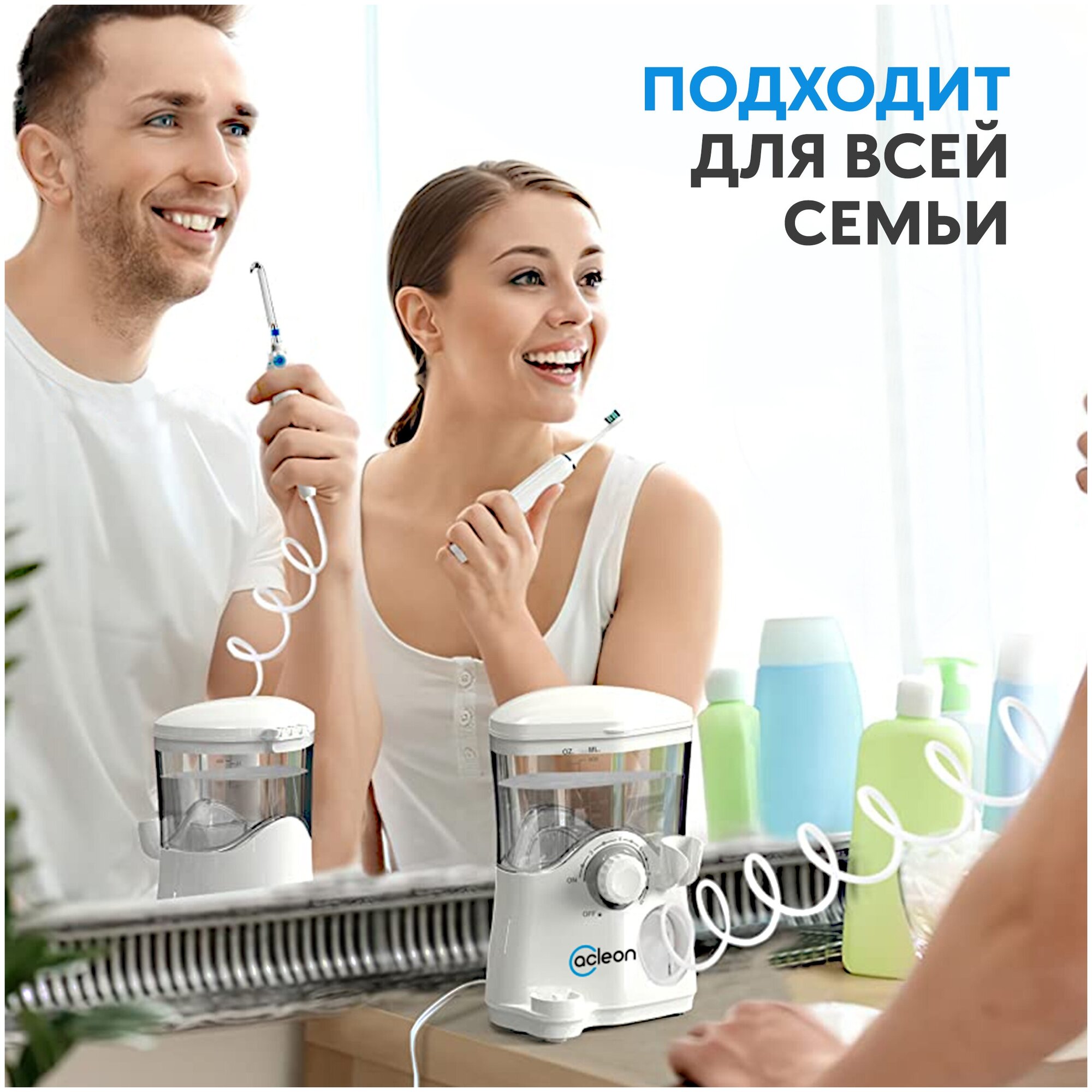Power supply: from the mains, type: dental center, principle of operation: impulse, nozzles: for cleaning implants and crowns, for cleaning the tongue, orthodontic for braces, periodontal for gums, reservoir capacity: 600 ml, maximum