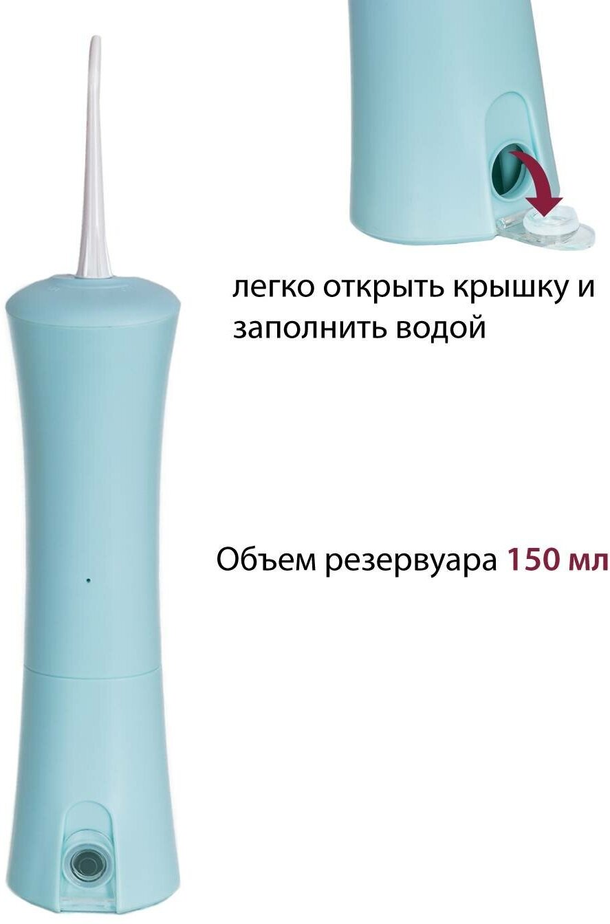 Powered: by battery, type: dental center, principle of operation: microbubble technology, nozzles: for jet cleaning, brush head, periodontal for gums, number of irrigator modes/adjustments: 3, modes: page