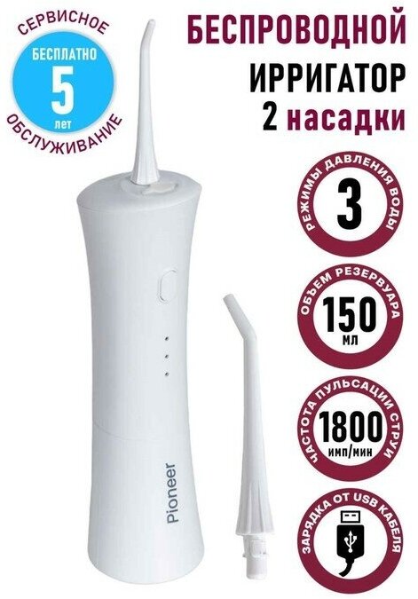 Powered: by battery, type: dental center, principle of operation: microbubble technology, nozzles: for jet cleaning, brush head, periodontal for gums, number of irrigator modes/adjustments: 3, modes: page