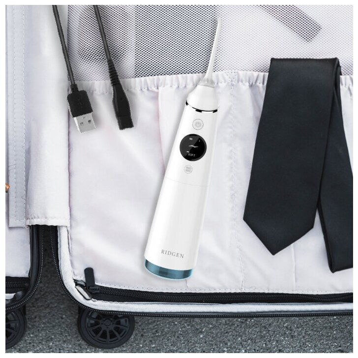 Powered: by battery, type: irrigator, nozzles: for jet cleaning, for cleaning implants and crowns, for cleaning the tongue, orthodontic for braces, periodontal for gums, tank capacity: 280 ml, maximum