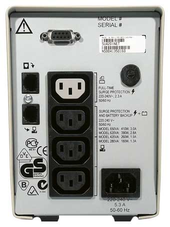Total output power: 620 VA, active output power: 390 W, type of output power connectors: IEC 320 C13 computer, Number of output power connectors UPS: 3, total number of output power connectors: 4, interface