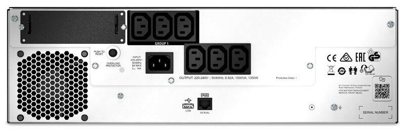 Output power apparent: 1500 VA, output power active: 1350 W, type of output power connectors: IEC 320 C13 computer, Number of output power connectors UPS: 6, number of output power connectors total: 6, height