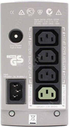 Total output power: 500 VA, active output power: 300 W, type of output power connectors: CEE 7 euro socket, IEC 320 C13 computer, Number of output power connectors UPS: 3, number of output power connectors