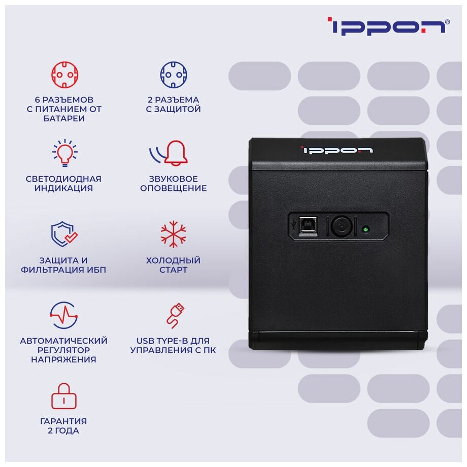 Total output power: 650 VA, active output power: 360 W, type of output power connectors: CEE 7 euro socket, Number of UPS output power connectors: 6, total number of power output connectors: 8, interfaces