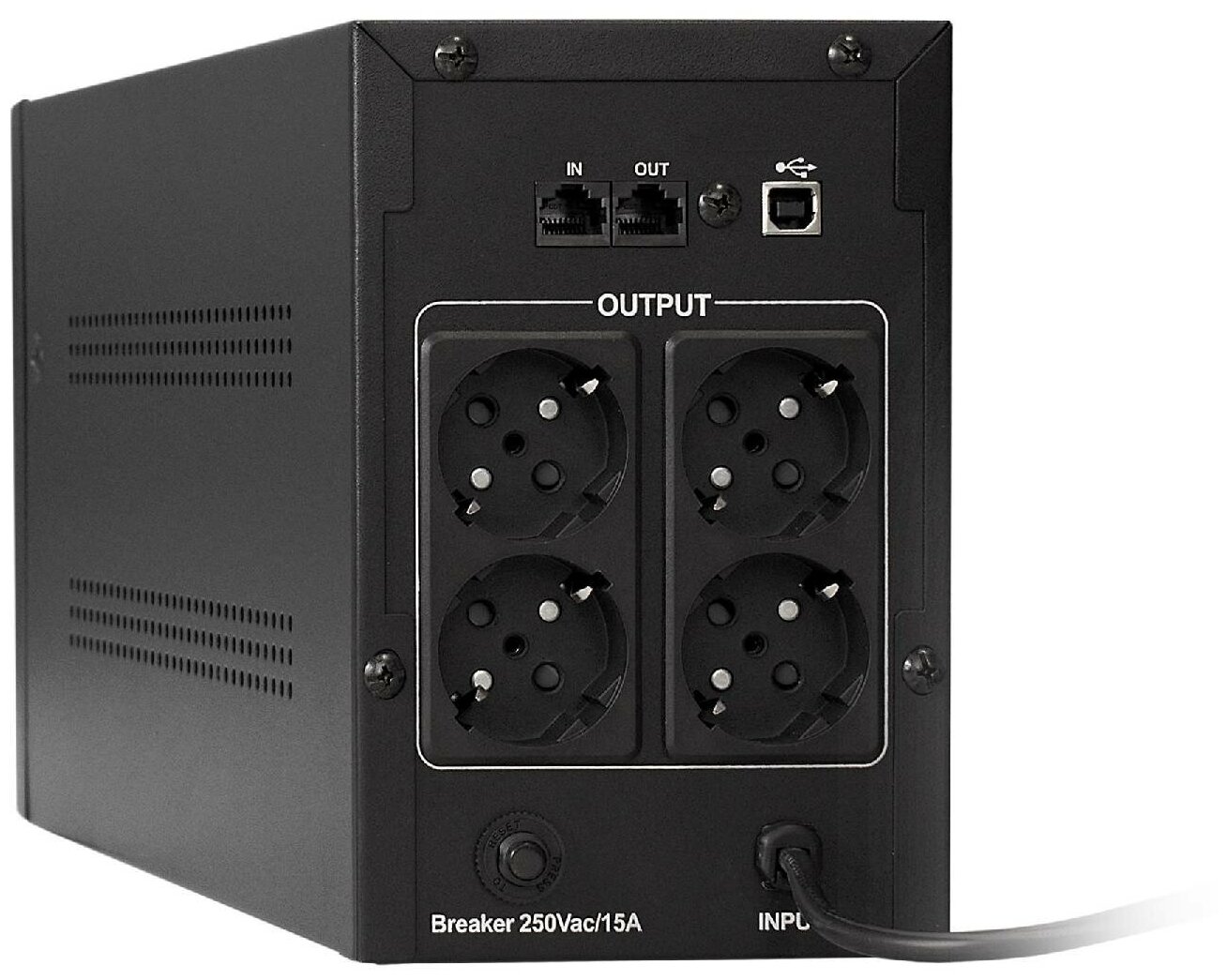 Total output power: 2200 VA, active output power: 1300 W, type of output power connectors: CEE 7 euro socket, Number of UPS output power connectors: 4, total number of power output connectors: 4, interface