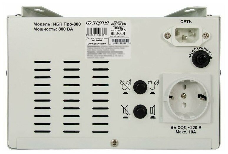 Description: Total output power: 800 VA, active output power: 500 W, type of output power connectors: CEE 7 euro socket, Number of UPS output power connectors: 1, total number of power output connectors: 1