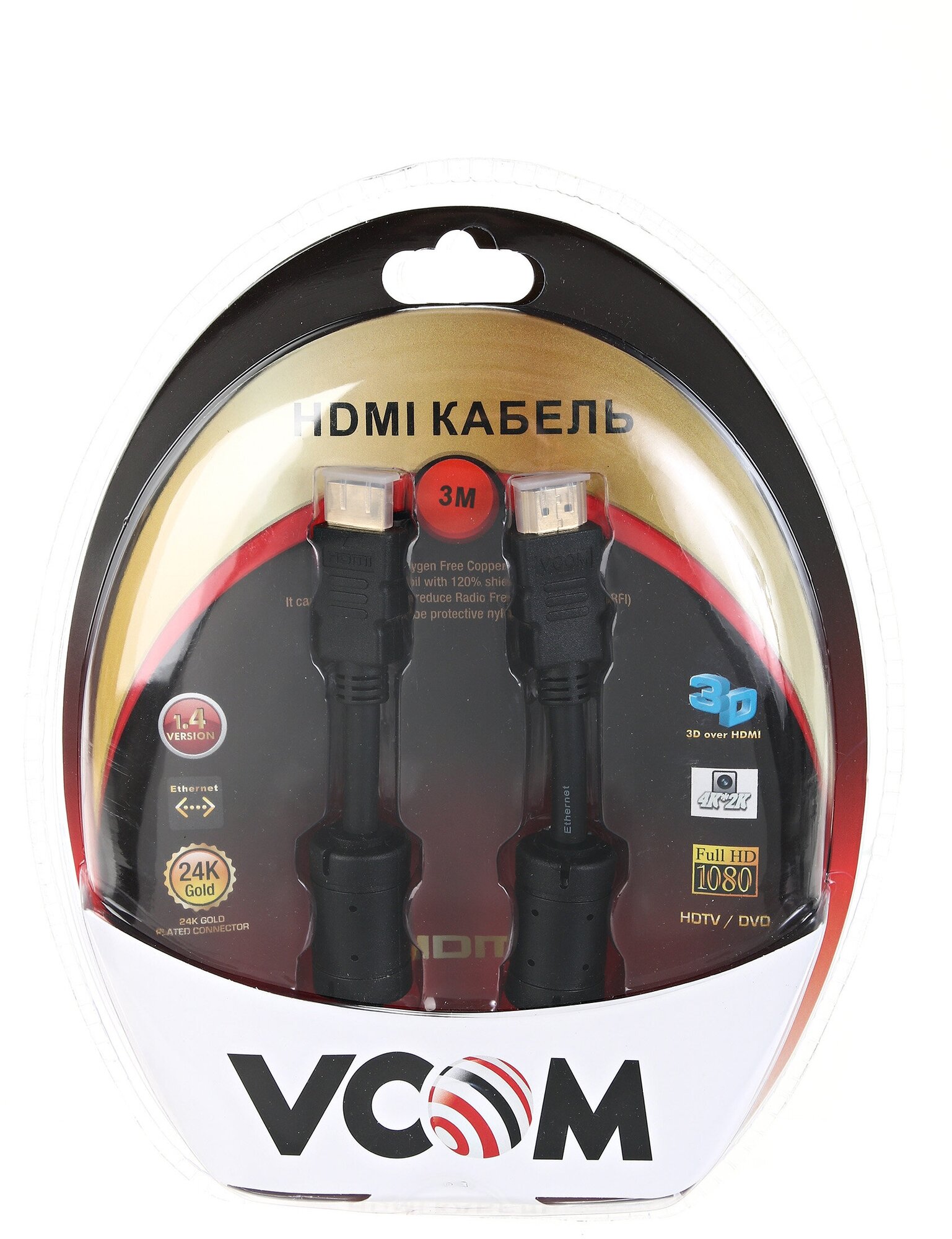 Type: cable, purpose: video, HDMI video, For audio and television equipment, connectors: HDMI M - HDMI M, features: gold-plated contacts, ferrite rings, 3D image support, Gold-plated connectors, HDMI version: 1.4