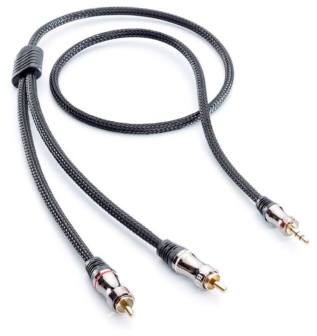 Type: cable, connectors: mini jack 3.5 mm M - 2 x RCA M, features: gold-plated contacts, fabric braid, shielded cable
