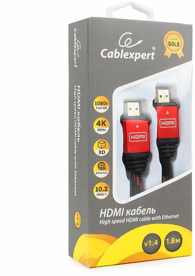 Type: cable, purpose: video, HDMI video, Universal, connectors: HDMI M - HDMI M, features: gold-plated contacts, fabric braid, 3D image support, Ethernet connection support HDMI Ethernet Channel, HEC, Resolution support