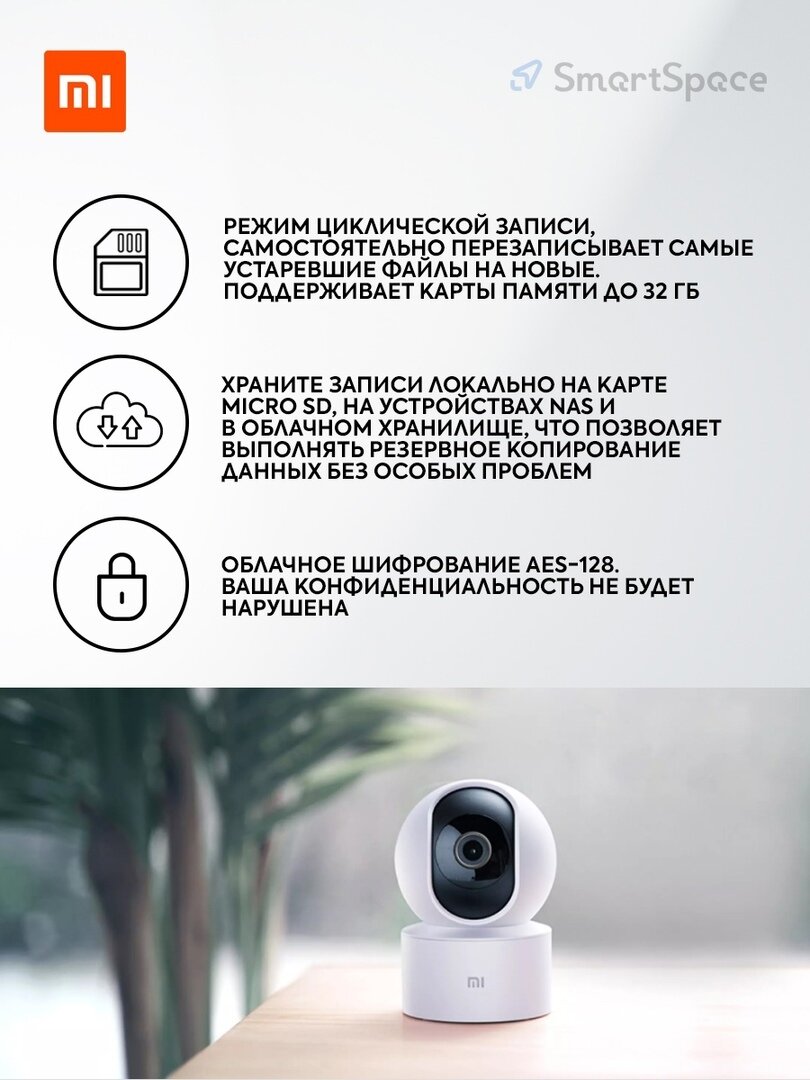 Compatible with Android 4.4 or iOS 9.0 and later; interacts with voice assistants Google Assistant, Amazon Alexa; Contents: camera, USB cable, mounting kit