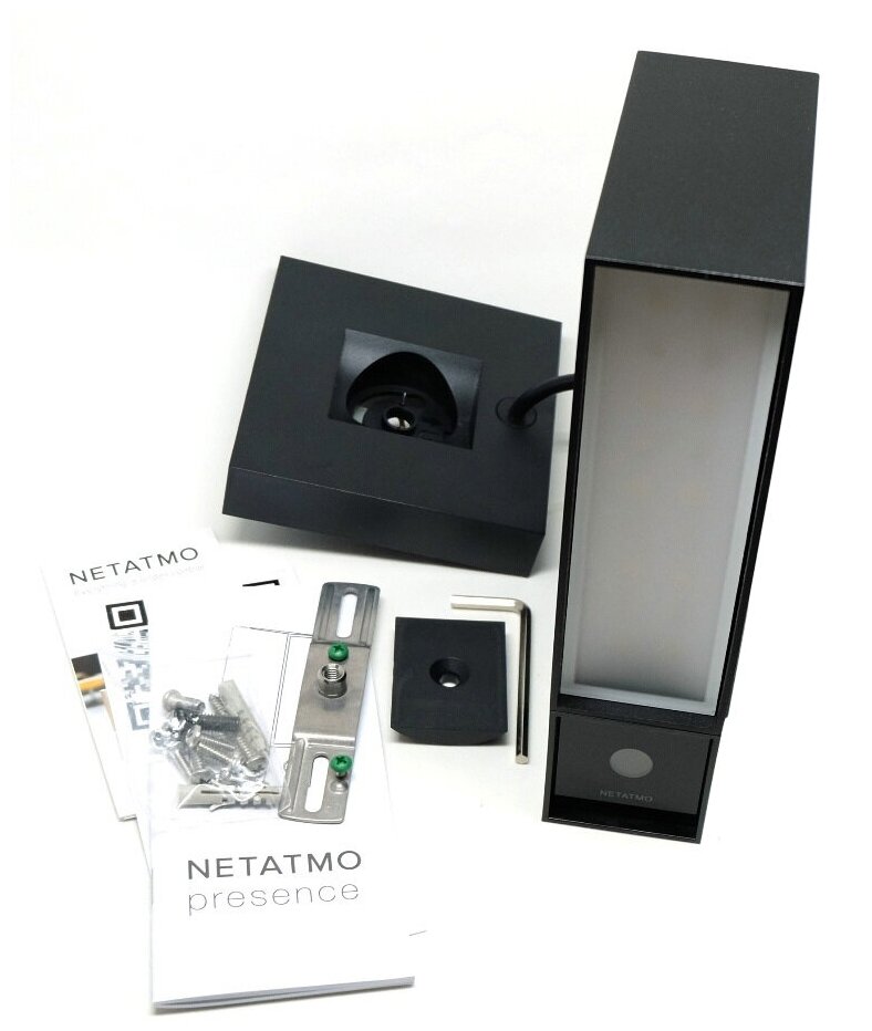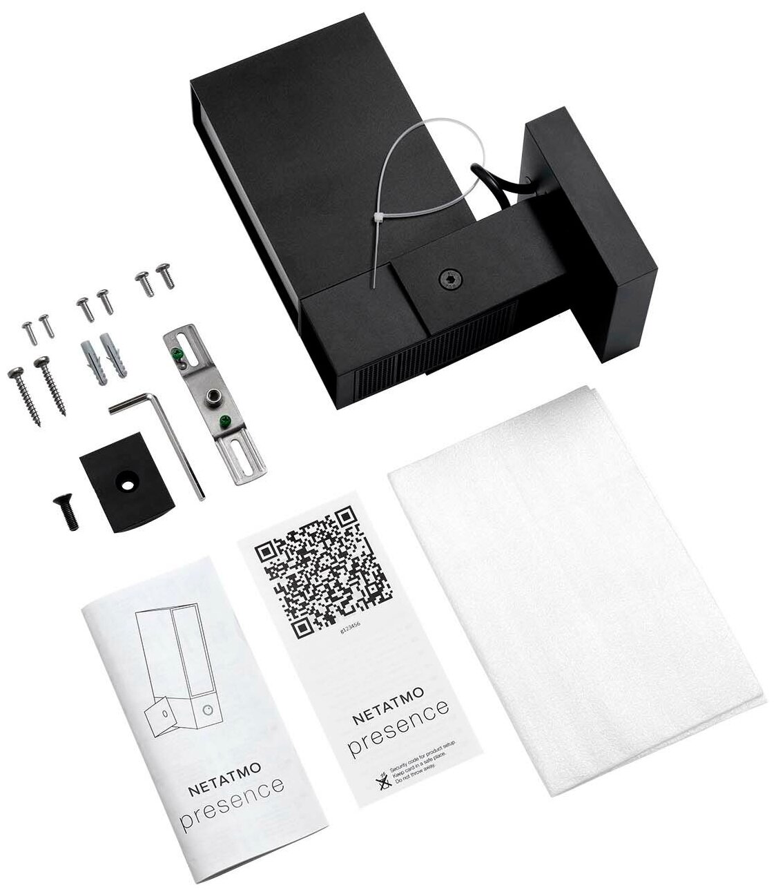 Contents: Netatmo Presence camera, camera mounting kit, 8 GB MicroSD card, Class 10, user manual