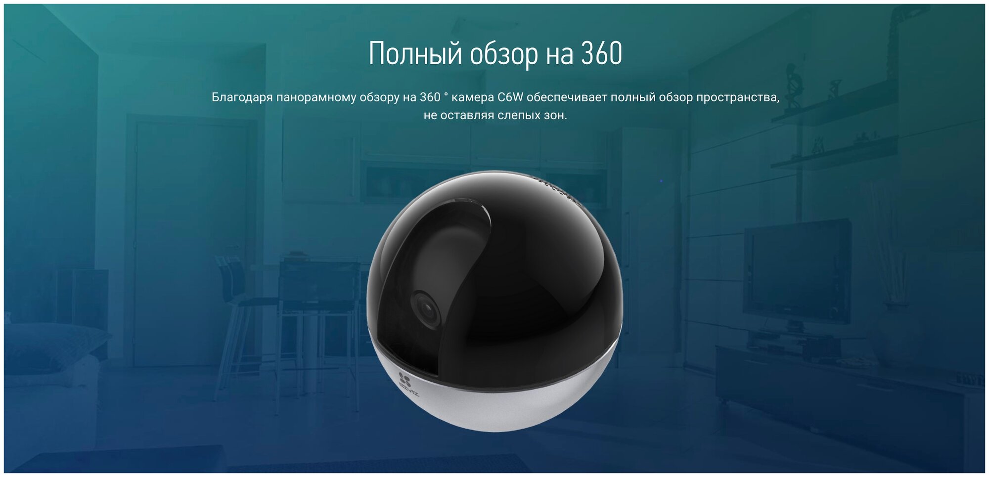 2K resolution; Tracking with automatic zoom; Panoramic view 360°; Two-way audio communication; Privacy mode; Supports MicroSD cards up to 256 GB; Ability to work through the EZVIZ application for iOS/Android