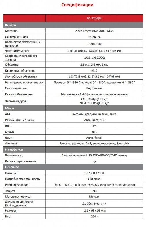 Video camera type: outdoor video camera, video camera standard: AHD, CVBS, HD-TVI, standard support: HD TVI/AHD/CVI/CVBS, max. video camera resolution: 1920x1080, functions and features: IR illumination, IR filter, backlight compensation, p