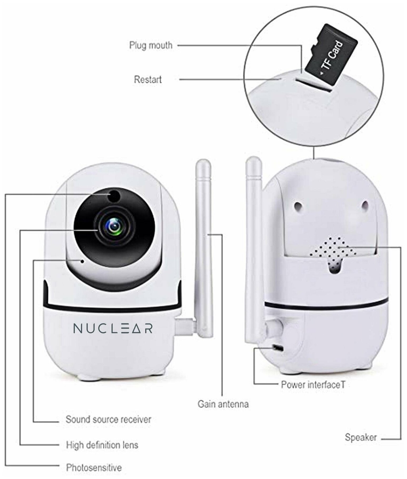 Wireless Rotary WiFi Baby Monitor IP 2MP Microphone, CD, Cloud PixPplus