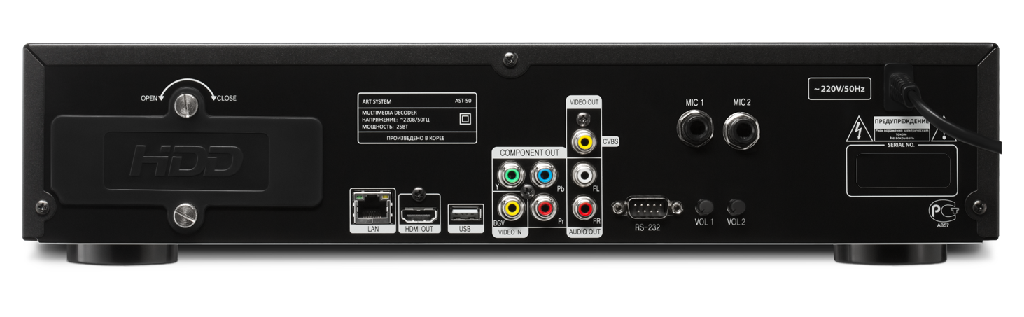 Type: karaoke system, karaoke system class: home, number of connected microphones: 2 pieces, number of preinstalled songs: 2000 pieces, features: built-in hard drive, card reader, portable, remote control, system