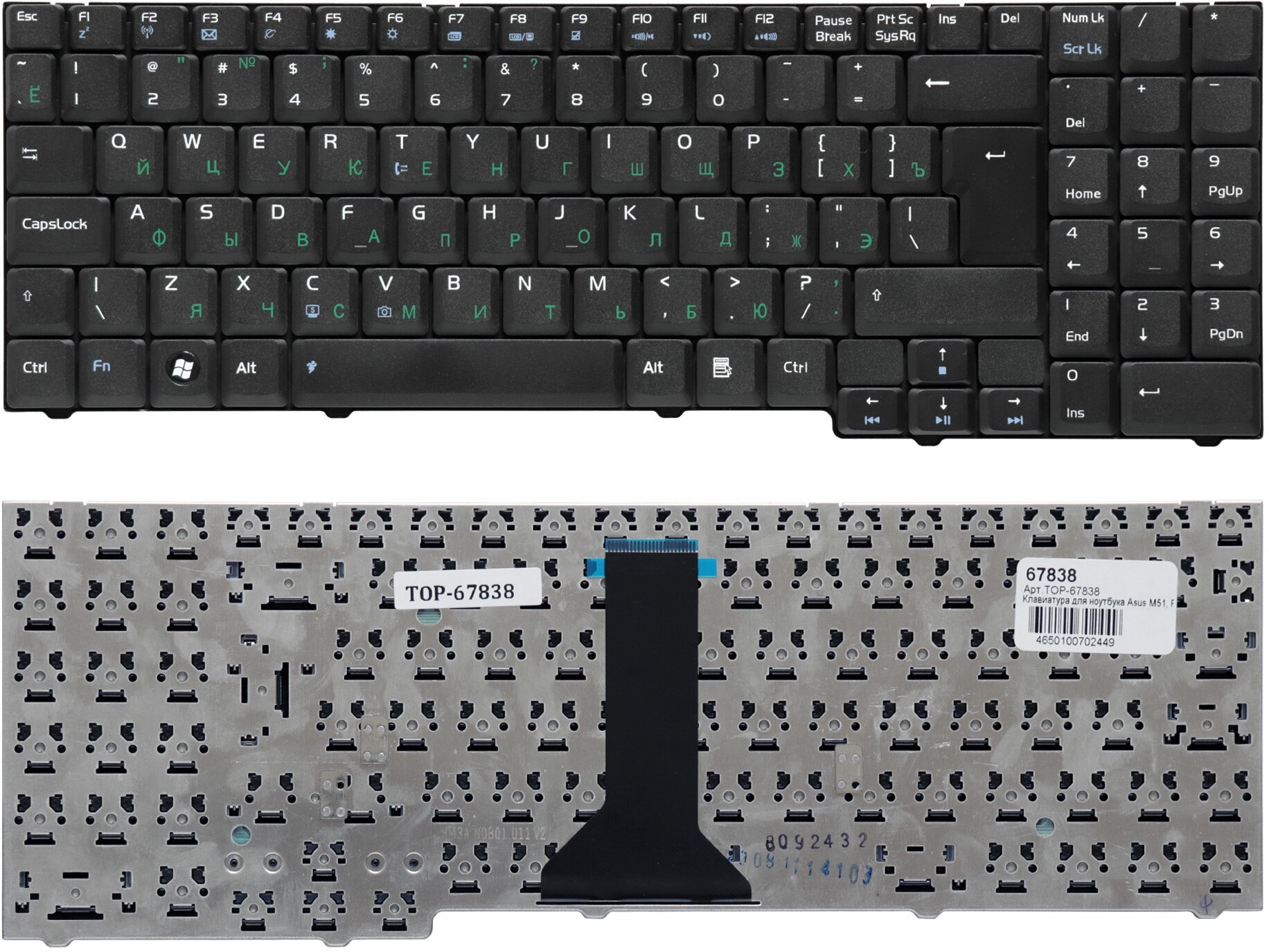 Keyboard for Asus F7, M51, X56 Series laptop. L-shaped Enter. Black, no frame. PN: NSK-U400R
