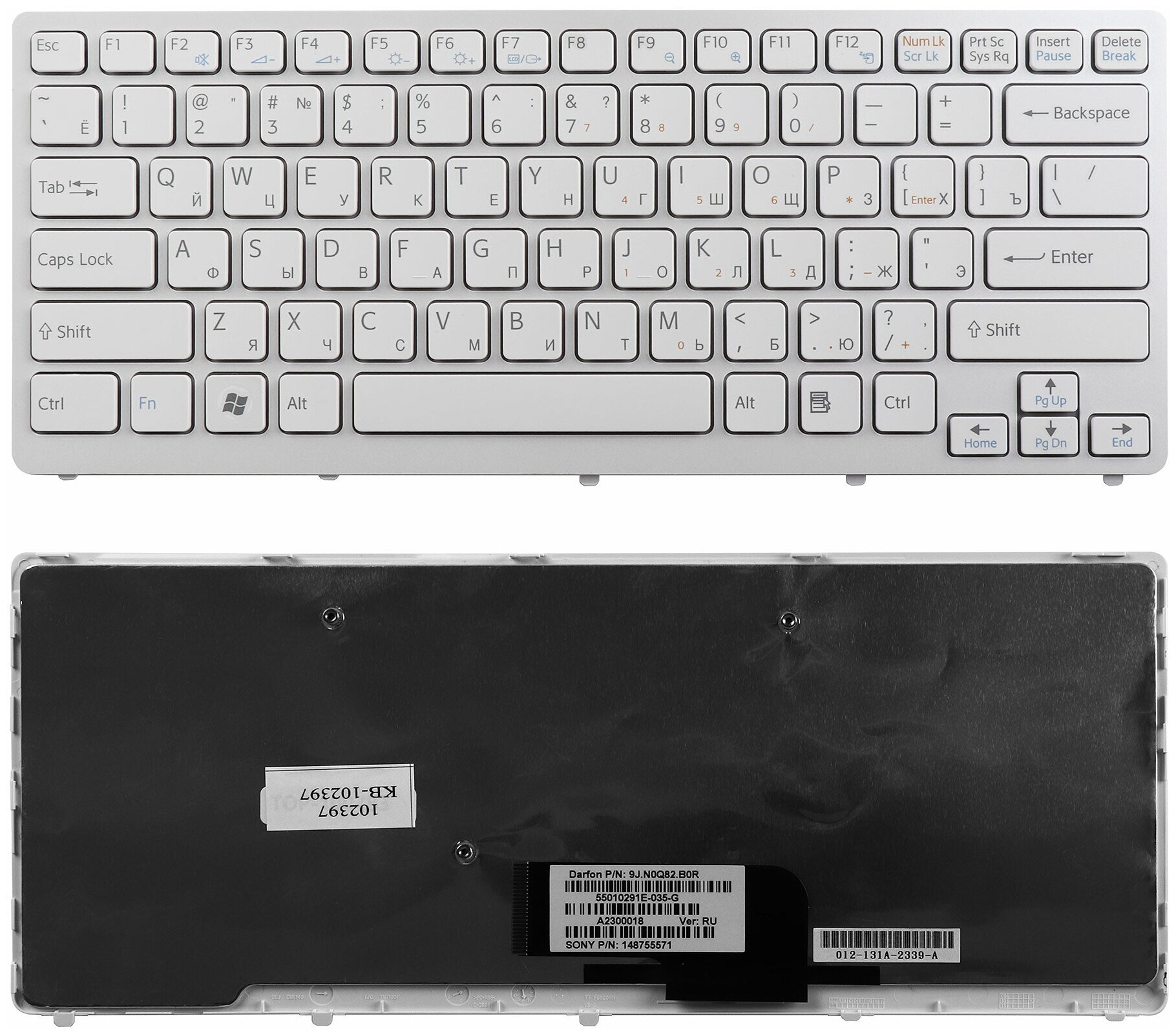 Sony Vaio VPC-CW, VGN-CW Series. Flat Enter. White. With white frame. PN: NSK-S7A0R.
