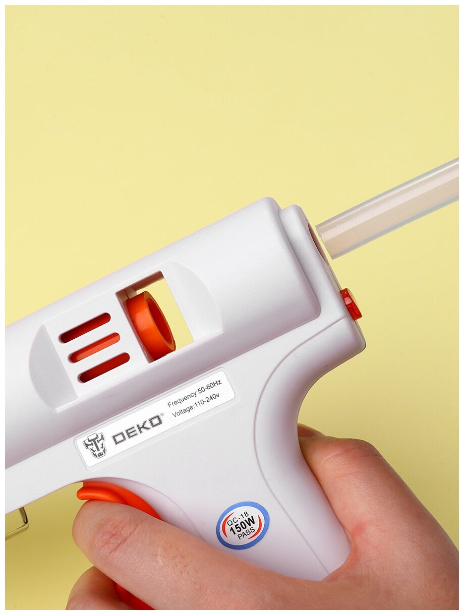 Glue stick diameter: 11 mm, type: glue gun, power supply: from the mains, maximum power consumption: 150 W, stick length: 200 mm, number of sticks included: 10 pcs., transparent stick, weight: 300 g