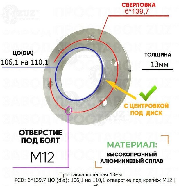 13mm 6*139.7 CO 106.1 110.1 hole for M12 hub with collar hub 6x139.7