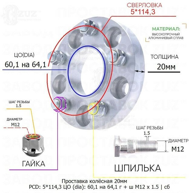 20mm 5*114.3 TsO 60.1 64.1 included Nut + Stud M12*1.5 hub with collar hub 5x114.3