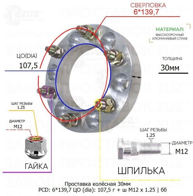 30mm 6*139.7 TsO 107.5 included Nut + Stud M12*1.25 hub without collar hub 6x139.7