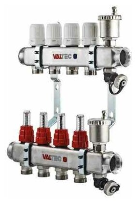 Valtec Collector group with thermostat and flowmeters, assembled 1*12 outlets eurocone 3/4 steel, Valtec