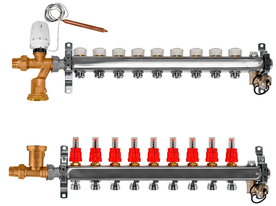 Distribution collector module ColSys 509A for underfloor heating with a mixing unit, 9 outlets