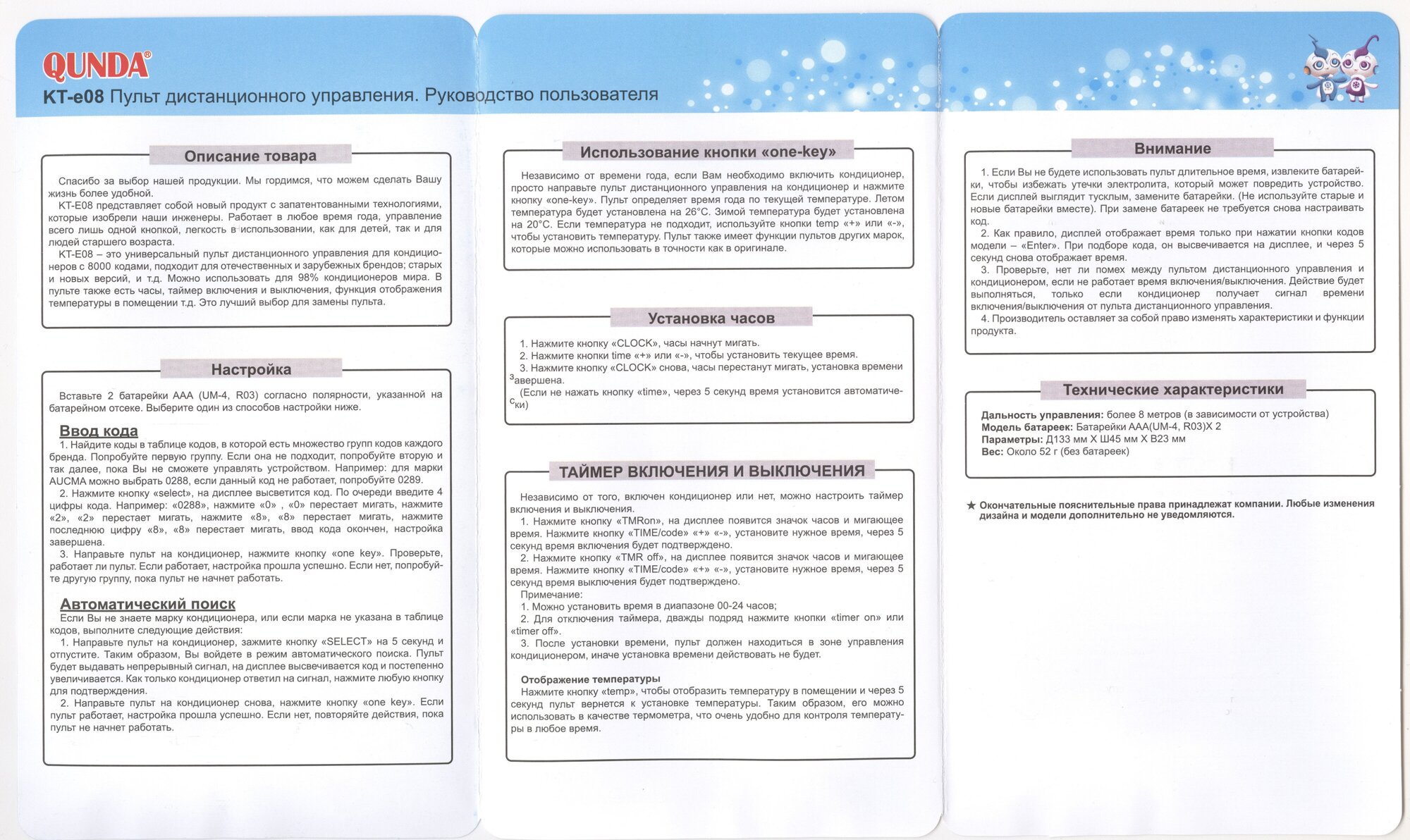 Type: remote control, purpose: for air conditioner, indicators: power-on indication, heating temperature indication, digital display, features: shutdown timer