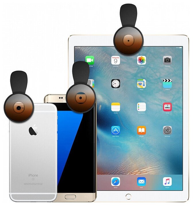 Type: light filter, type of attachment to the phone: clothespin, case material: metal, lens material: glass