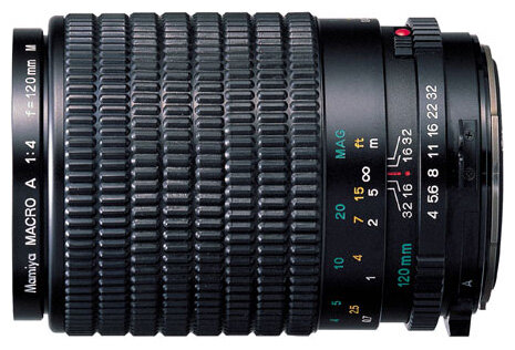 Bayonet mount: Mamiya 645, lens type: macro lens, focal length: fixed, prime lens focal length: 120 mm, aperture F at min. focal length: 4, functions: macro mode