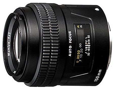 Mount: Mamiya 645, lens type: telephoto, focal length: fixed, autofocus, prime lens focal length: 150 mm, aperture F at min. focal length: 3.50, functions: focusing