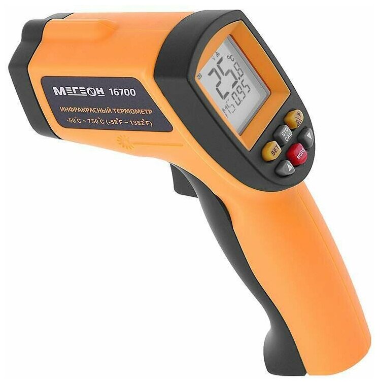 Display backlight; continuous measurement mode; measurement error: ± 3°С from -50°С to 0°С, ± 1.5°С from 0°С to max°С; spectral range: 8-14 microns; the presence of a battery charge indicator; working time: 22 hours without laser, 12 hours �