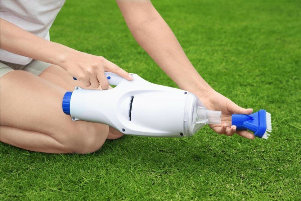 Bestway 58624 manual vacuum cleaner, container with garbage bag, wide nozzle, nozzle for hard-to-reach places, handle 2.22 m, USB cable