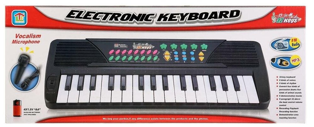 Number of keys: 32, keyboard hardness: unweighted, pedals: no, body: compact, auto accompaniment, song recording, USB Type A, microphone input, built-in speaker system, number of timbres: 8, synthesis