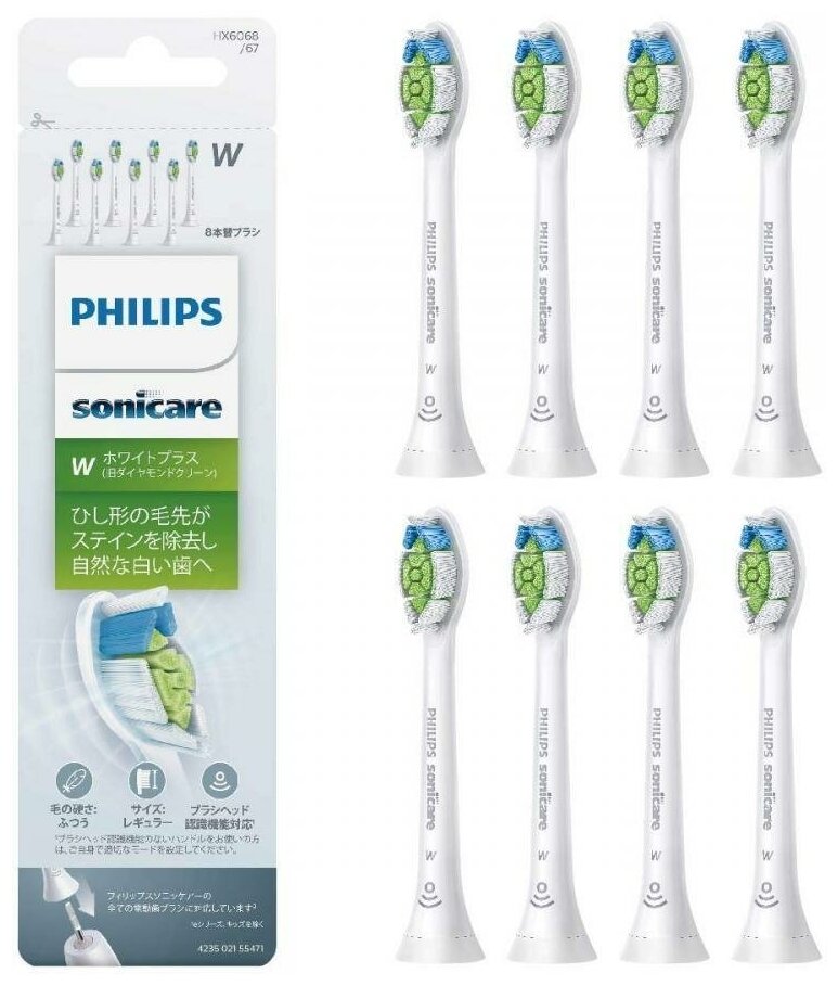 Philips Sonicare replacement brush White Plus Stain removal regular size 8 pcs White HX6068 / 67