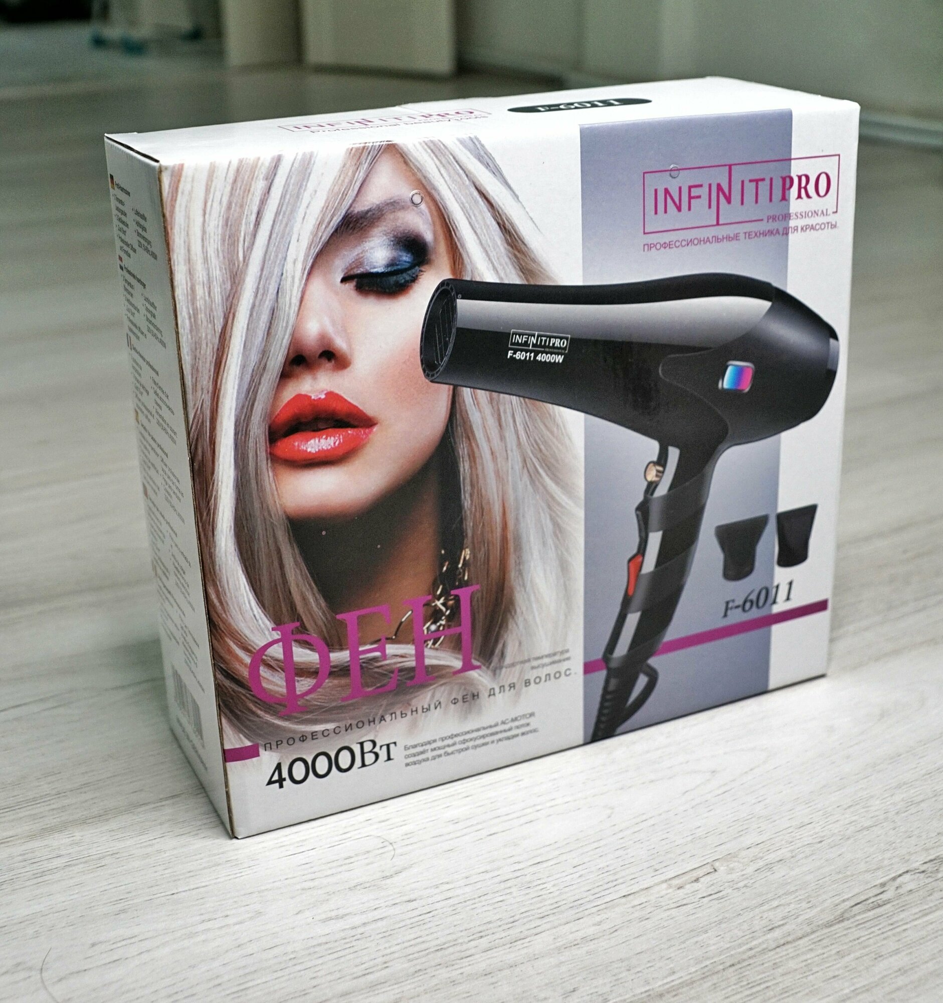 Type: hair dryer, hair dryer power: 2200 W, additional functions: ionization, independent adjustment of heating and air flow, cold air supply, attachments: diffuser, concentrator, number of heating modes: 3, quantity